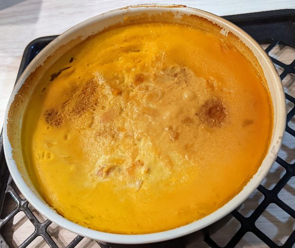 夫が近所の人からかぼちゃを丸ごと1個もらってきたため、かぼちゃプリンを作った。かぼちゃの自然な甘さを生かして砂糖控えめにしてみた。美味しいが、細かい温度調節などが出来ないオーブンレンジのため、少々焼け過ぎてプリンとは言い難い食感になった。