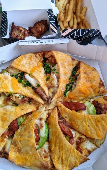 夜は「お盆だし…」みたいなノリでピザ+100円でチキンとポテトがついてくるというわんぱくなセットを注文した。